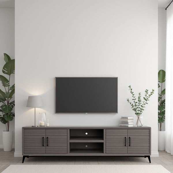 Room for consoles, media, accessories, and easy cable routing.