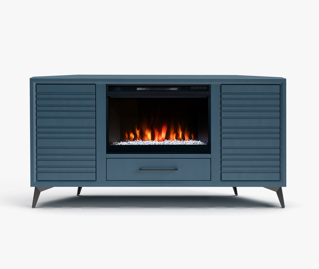 The Malibu TV Corner Stand is smooth, sleek, and modern. Combining the uniquely designed slatted doors with metal feet brings a new look to any home. Malibu also matches anyone with high-tech media and gaming gear to bring their style into the future.