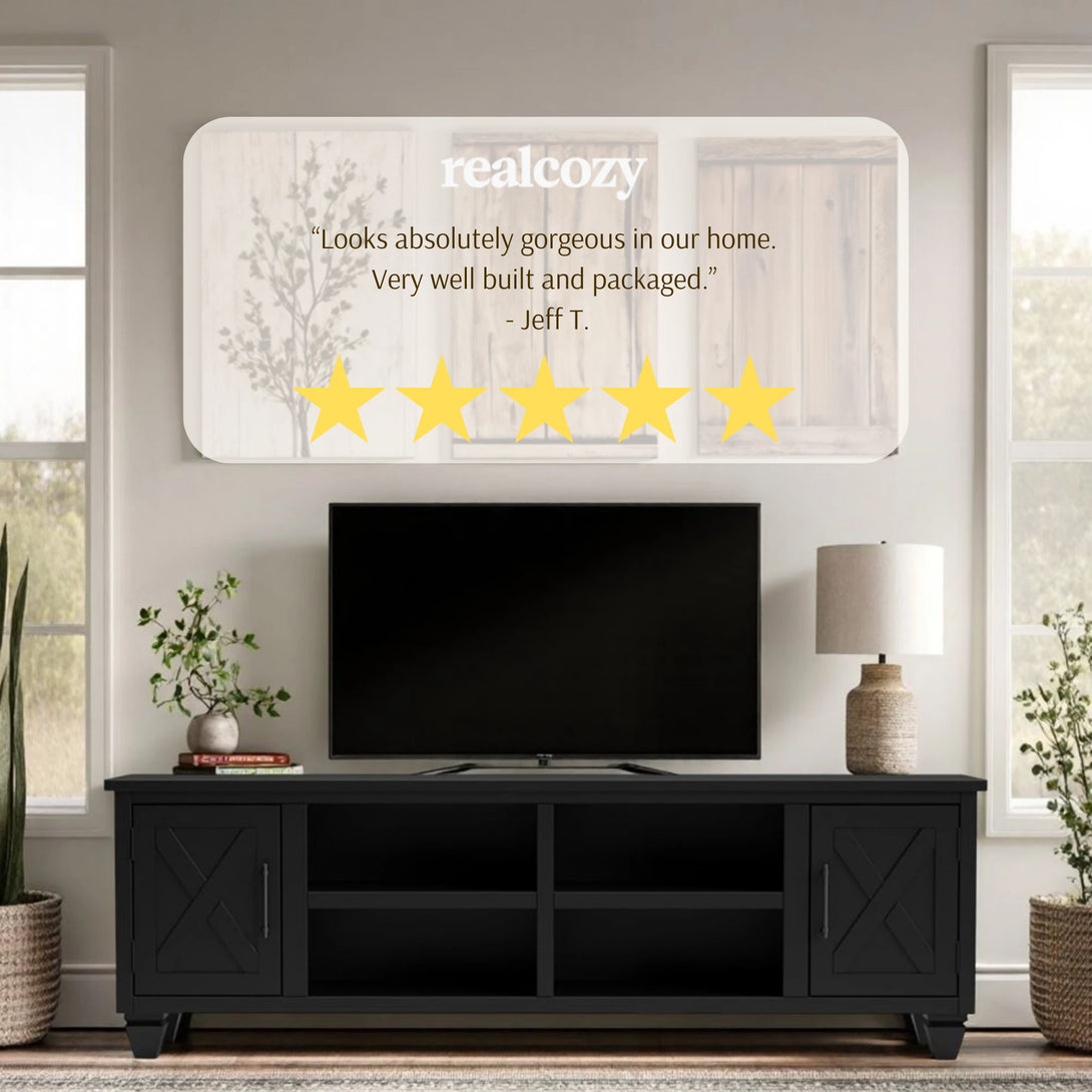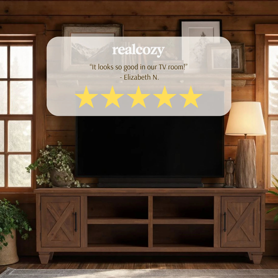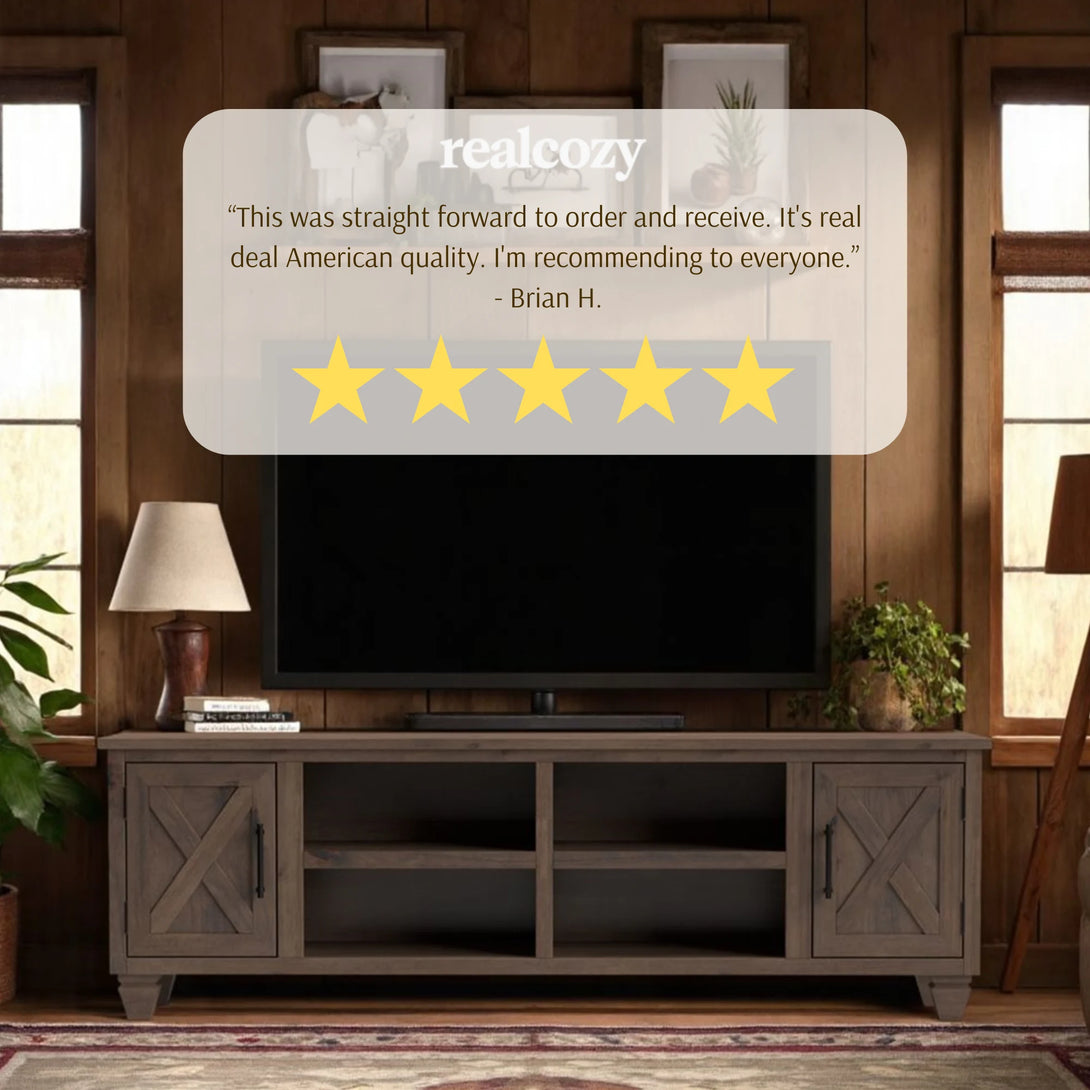 Crafted in the USA with real wood solids, veneers, and engineered wood for durability and timeless elegance. Realcozy TV stands bring the natural warmth and beauty of real wood grains to your home.