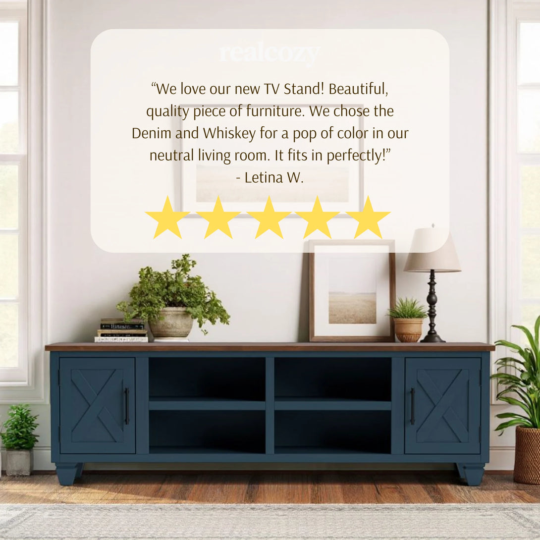 Liberty 78-inch TV Stands Denim/Whiskey Brown - Rustic Modern Farmhouse