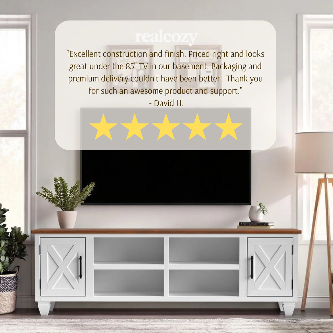 Liberty 78-inch TV Stands White/Bourbon Brown - Rustic Modern Farmhouse