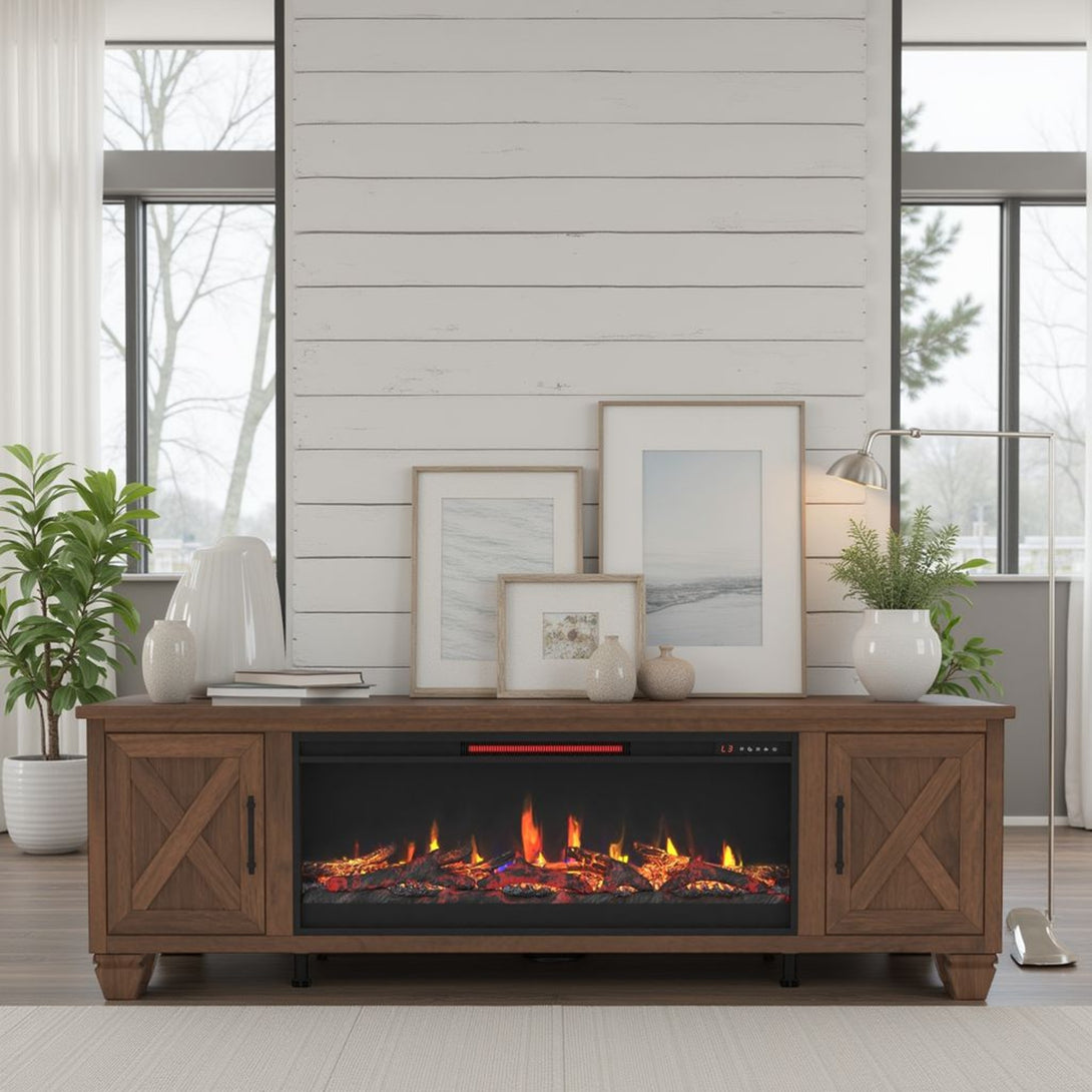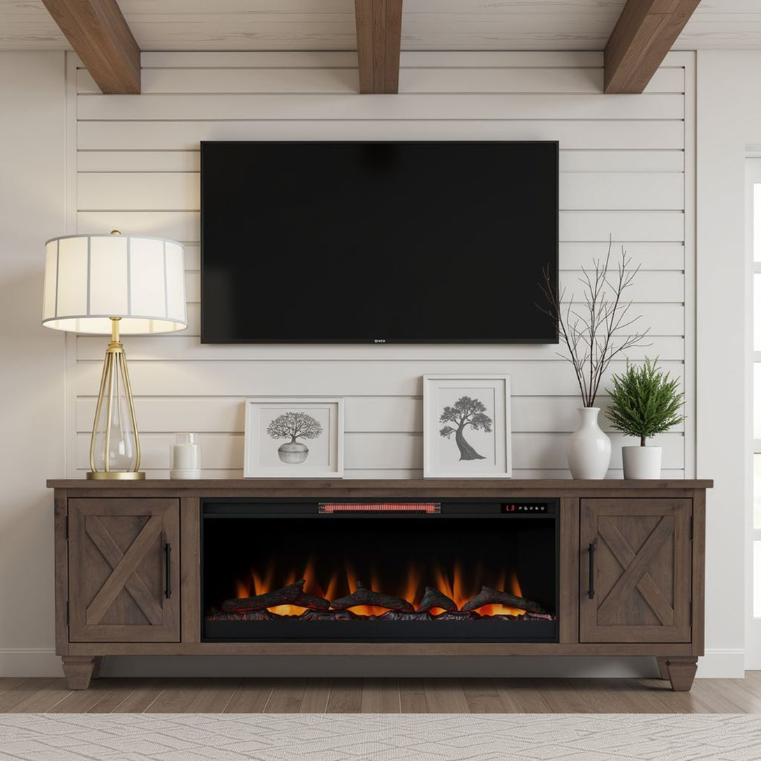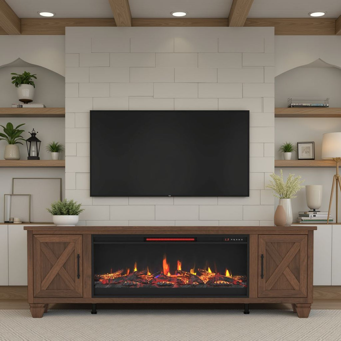 Liberty 78-inch Fireplace TV Stand Whiskey Brown - Rustic Modern Farmhouse
