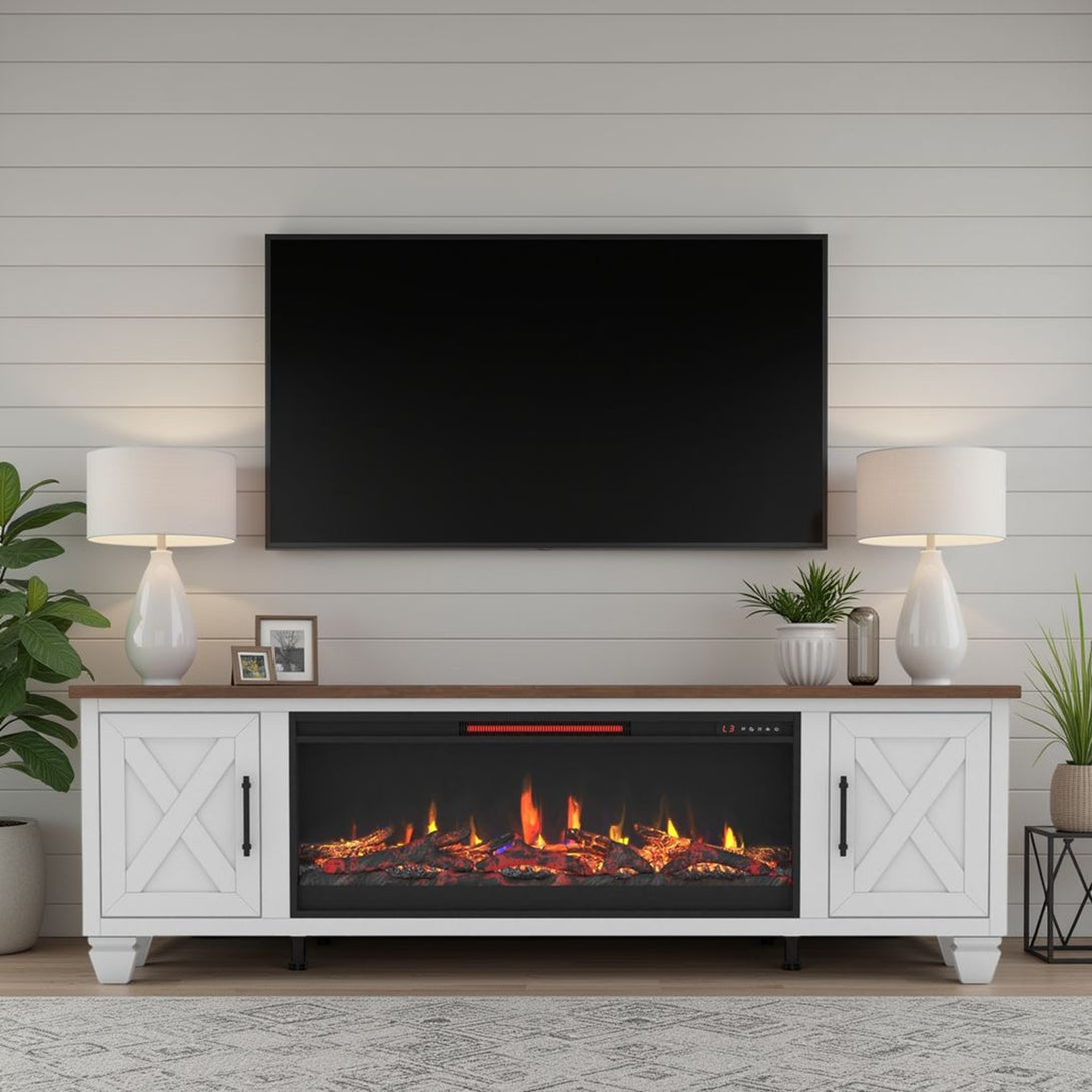 Liberty 78-inch Fireplace TV Stand White/Bourbon Brown - Rustic Modern Farmhouse