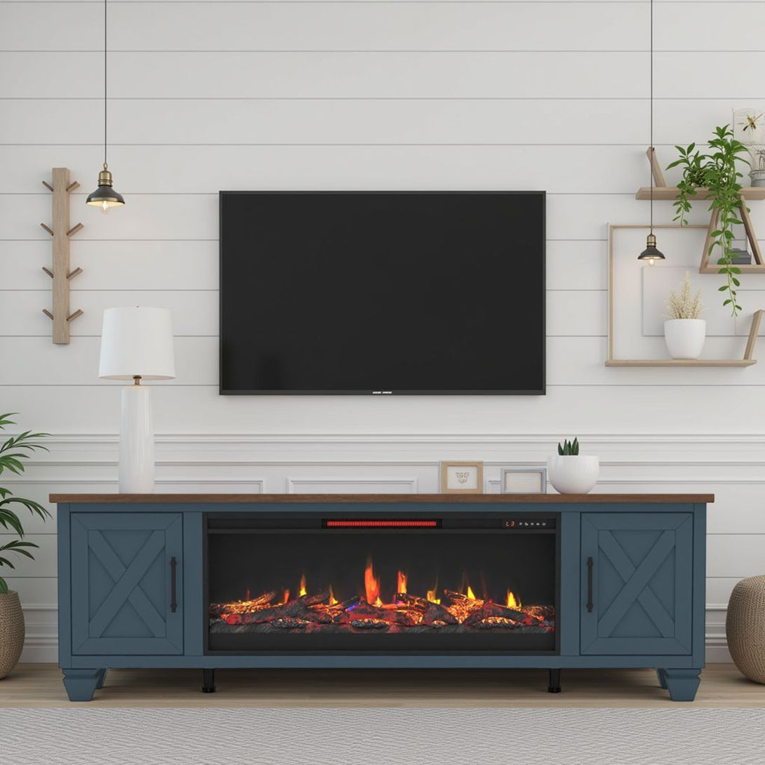 Liberty 78-inch Fireplace TV Stand Denim/Whiskey Brown - Rustic Modern Farmhouse