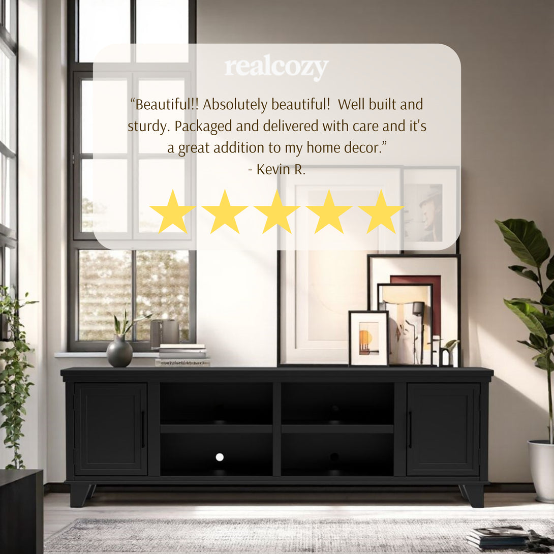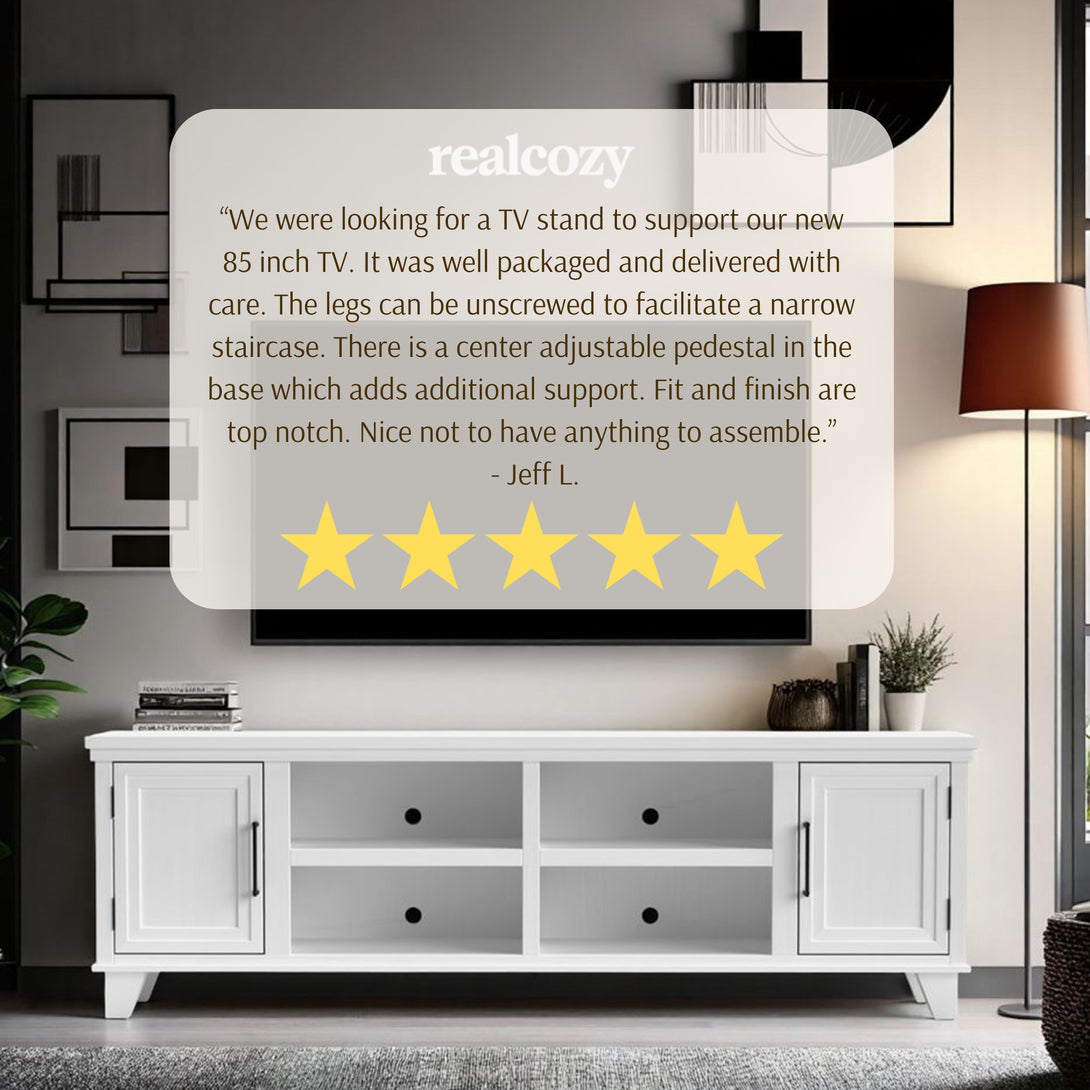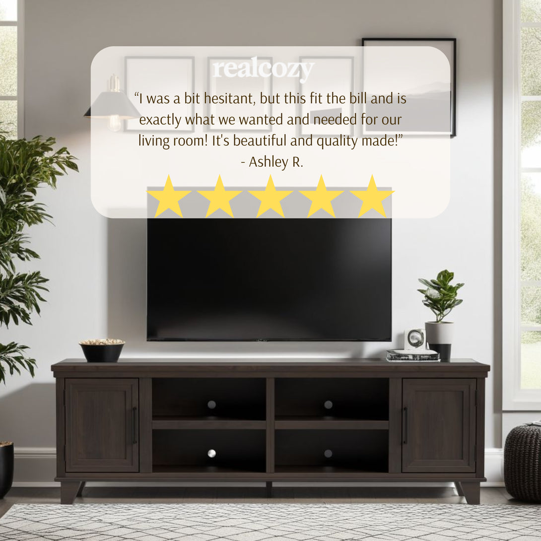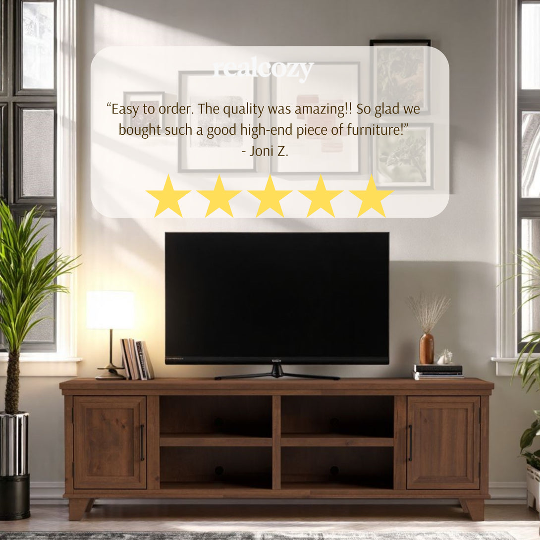 Crafted in the USA with real wood solids, veneers, and engineered wood for durability and timeless elegance. Realcozy TV stands bring the natural warmth and beauty of real wood grains to your home.