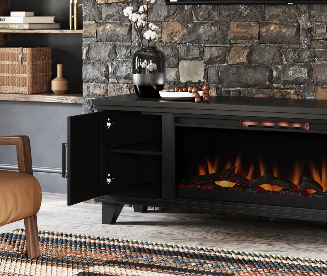 If you order a fireplace, it will come in a separate box and will need to be inserted into the TV stand and fastened in place (2 screws).