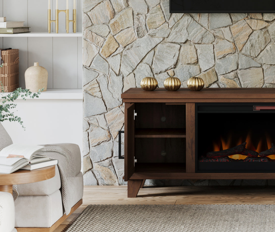 If you order a Fireplace TV Stand, the fireplace insert itself comes in a separate box and will need to be customized to your liking, then placed in the back of the TV stand.