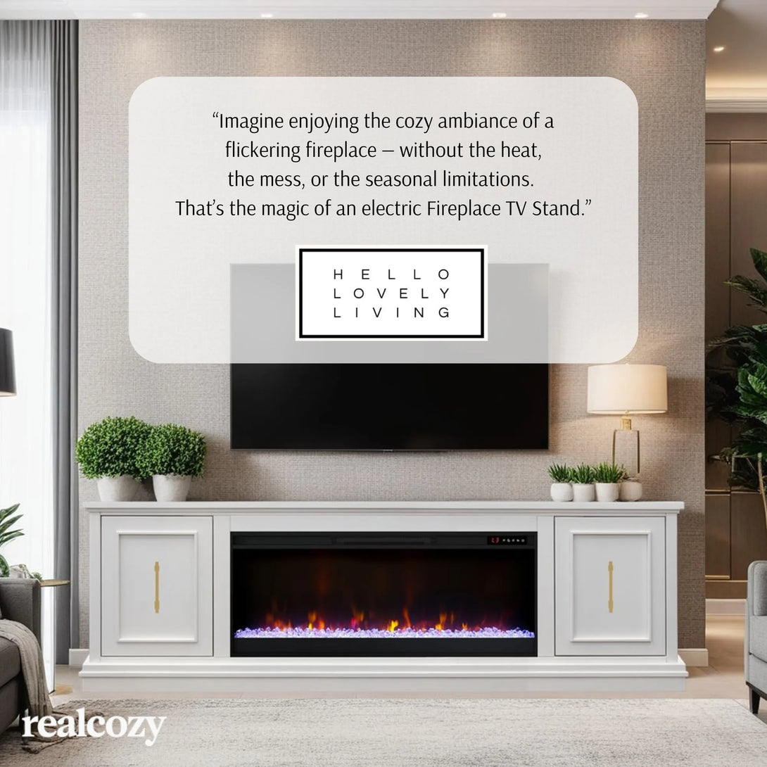 Crafted in the USA with real wood solids, veneers, and engineered wood for durability and timeless elegance. Realcozy TV stands bring the natural warmth and beauty of real wood grains to your home.